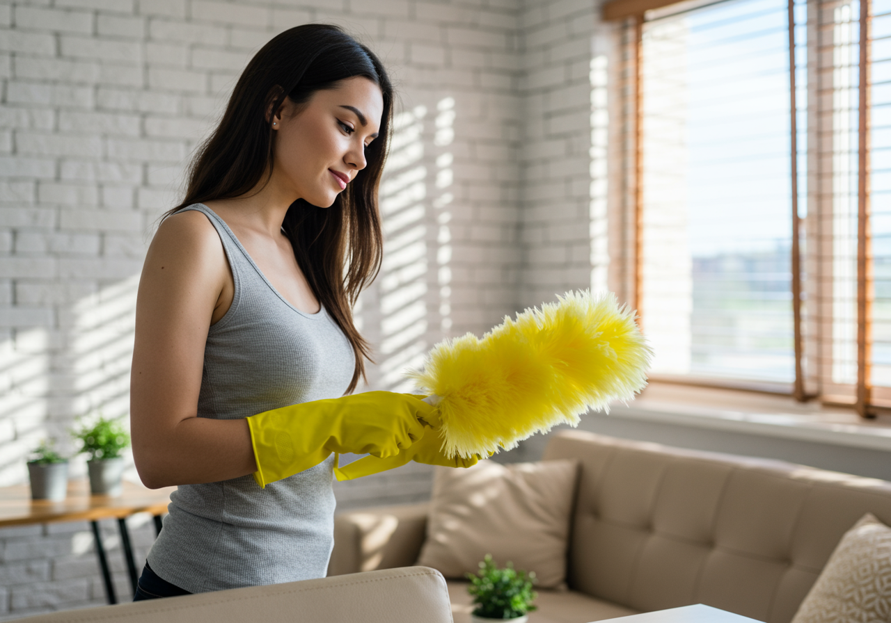1. Dust surfaces: Dust furniture, shelves, and other surfaces to prevent buildup.