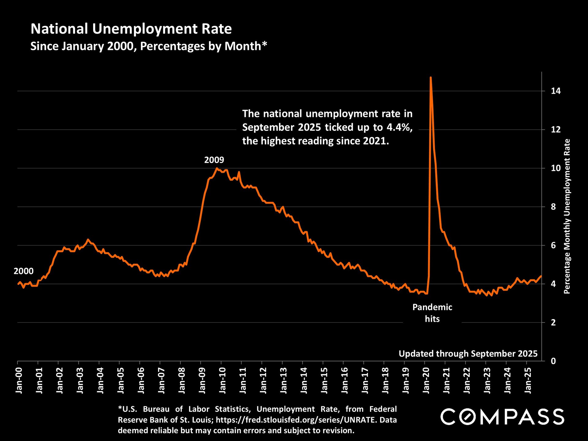 The national unemployment rate remains low by historical standards but has been trending upward, a factor the Federal Reserve weighs carefully.