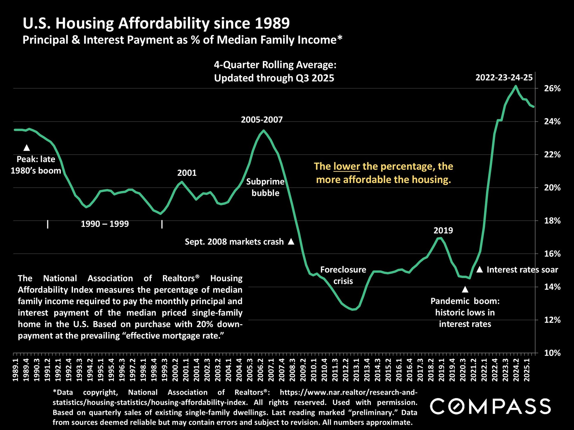 NAR’s affordability index shows a long-term pattern of severe stress, but recent months have provided modest relief (Page 4).
