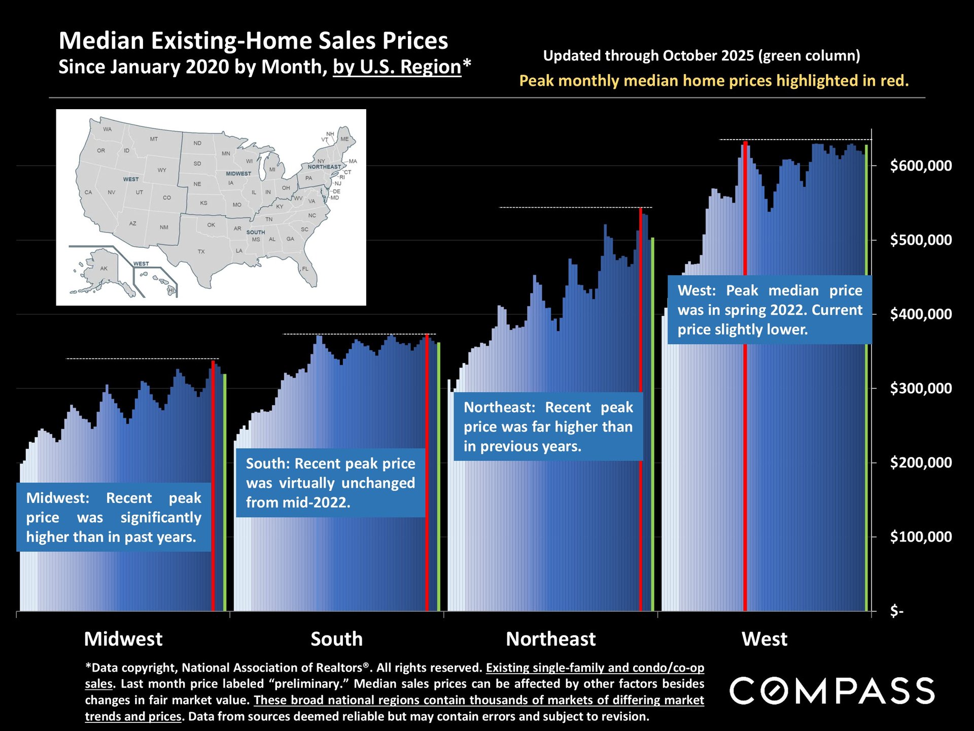 NAR divides the U.S. into four broad regions: Midwest, South, Northeast, and West.