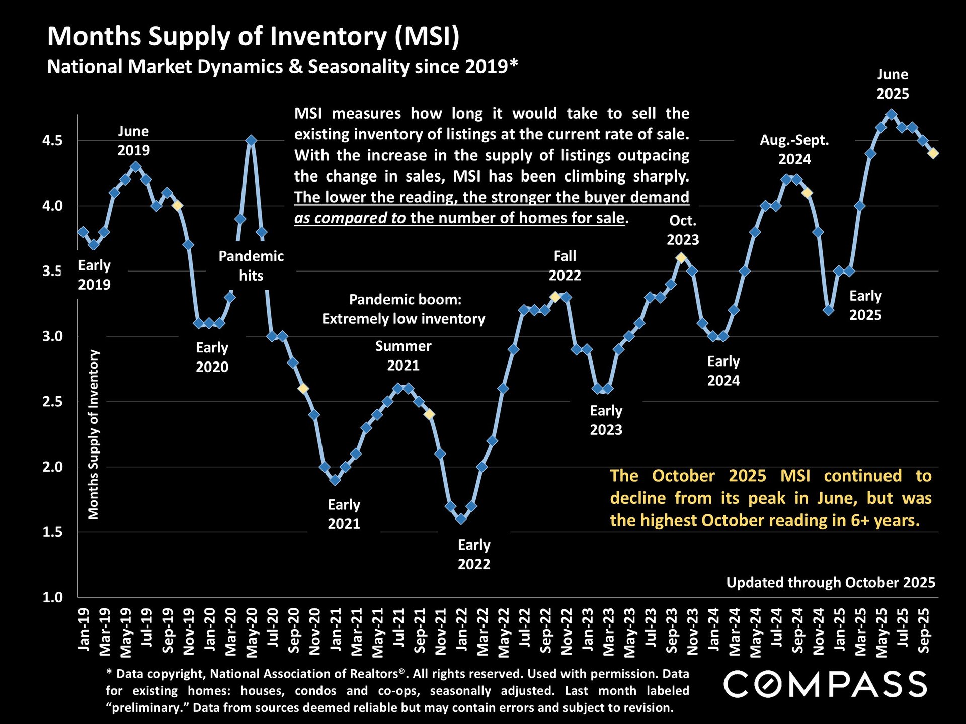 MSI has been falling since June, signaling stronger buyer demand through late summer and fall. Even so, MSI is higher than last year due to increased inventory, giving buyers somewhat more negotiating power compared to 2023–2024.