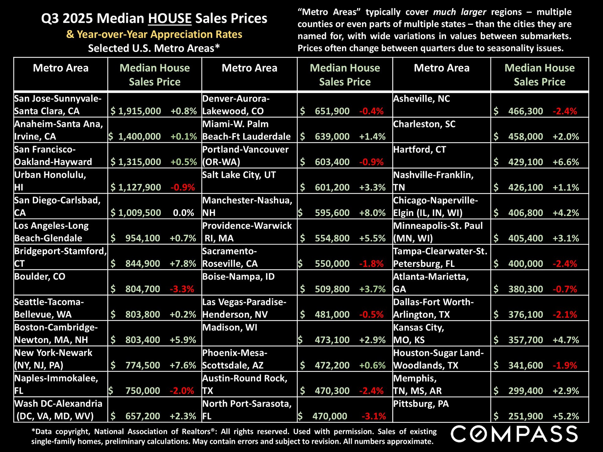 Q3 2025 ‘Metro-Area’ Median House Prices