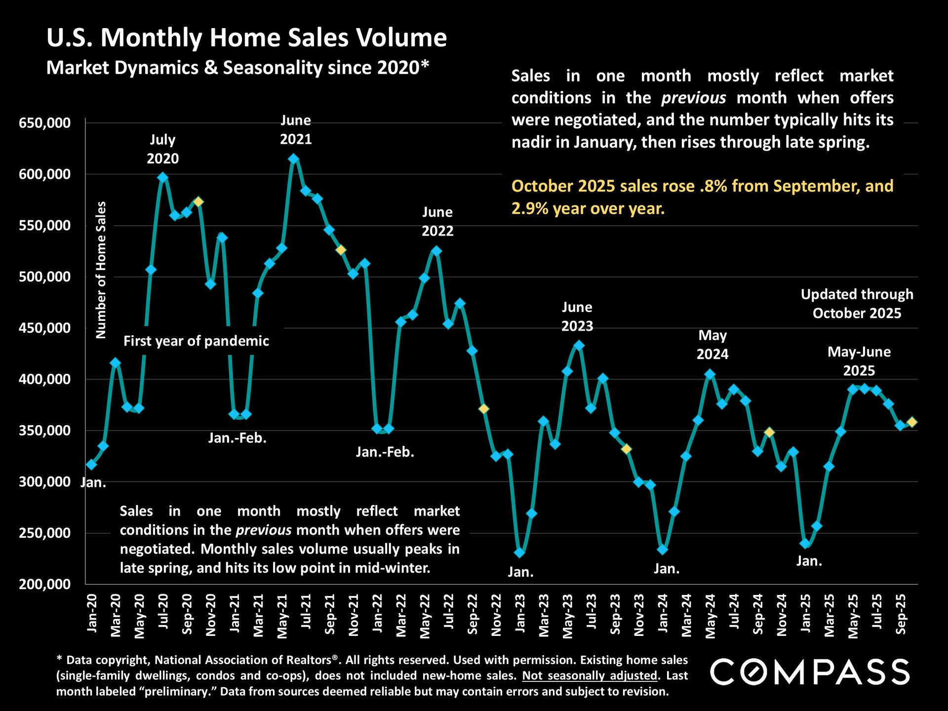 Sales rose modestly in October—up nearly 3% over the same month last year—yet remain historically low when compared to pre-2020 markets.