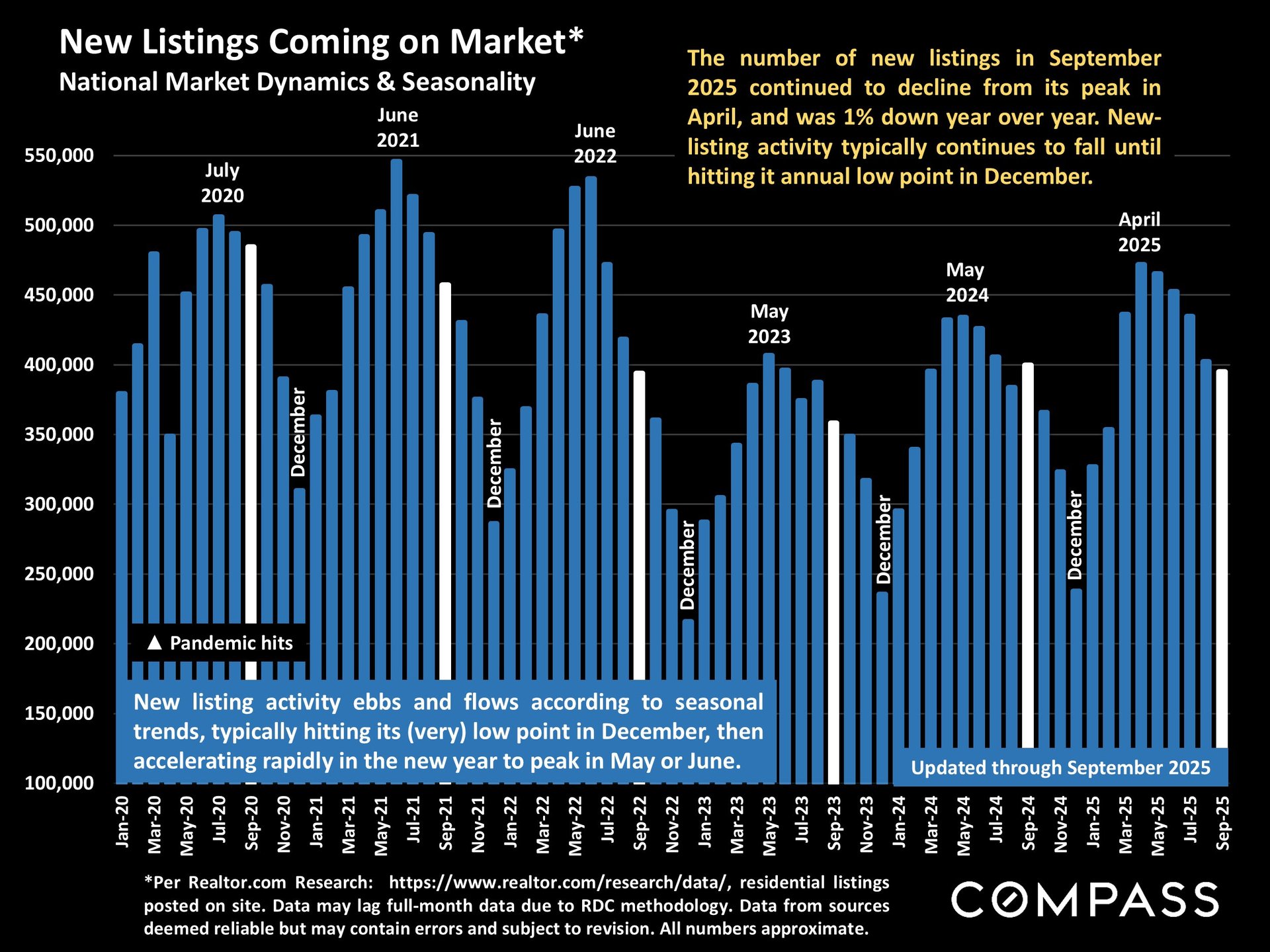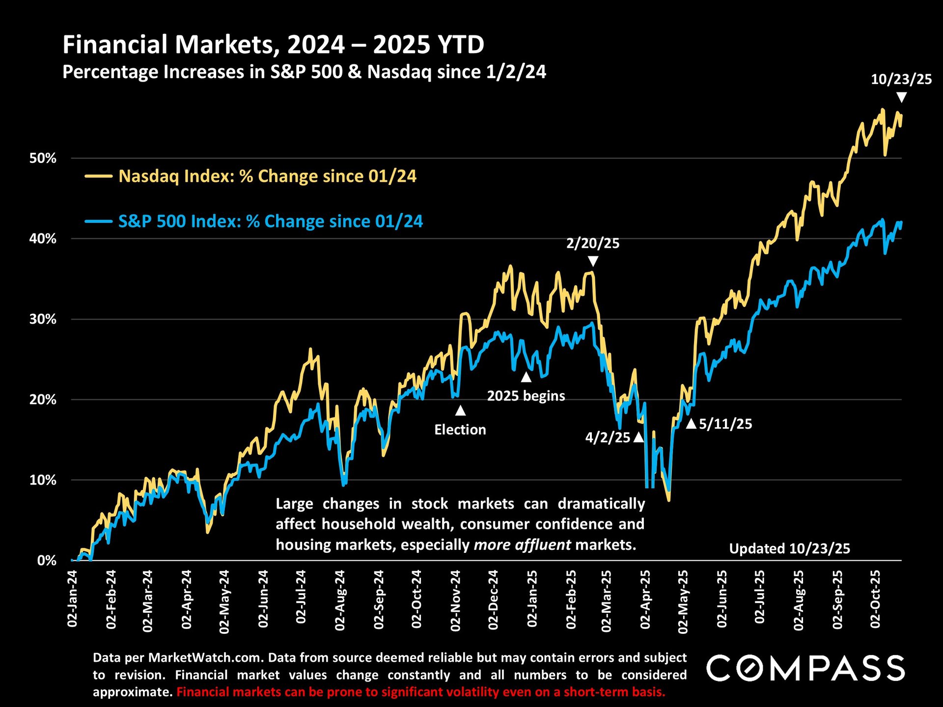 Falling mortgage rates often reignite buyer enthusiasm, and if the trend continues, we could see a meaningful bump in demand throughout Q4. Meanwhile, stock markets remain near their September peaks, bolstering consumer confidence and household wealth—factors that often spill over into real estate decision-making.