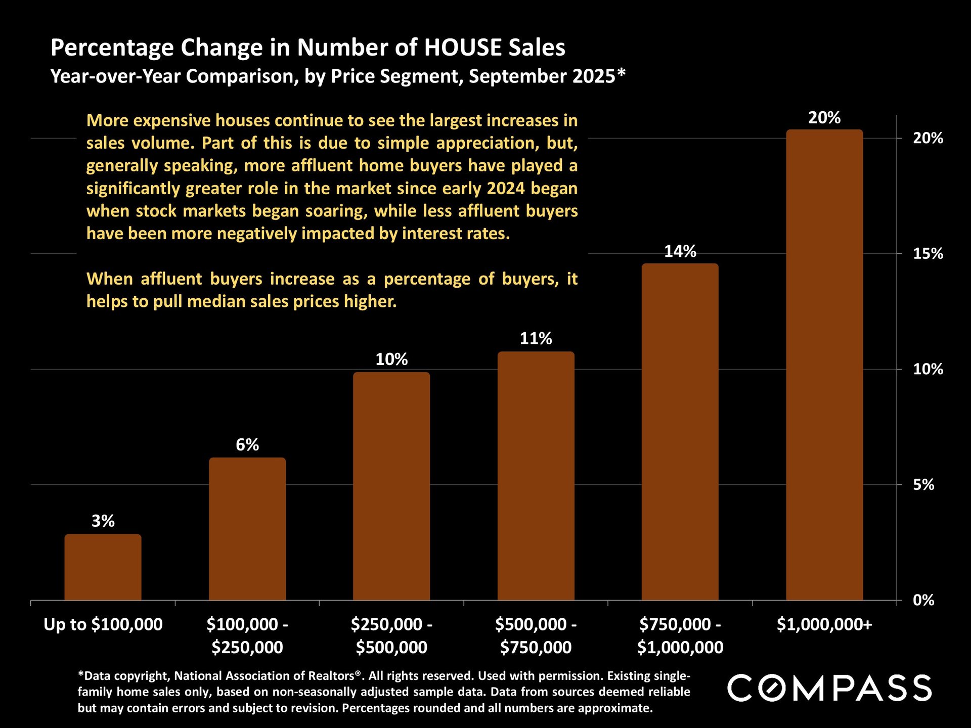 Interestingly, higher-priced homes have seen a faster increase in sales activity compared to more affordable segments. Nationally, the highest bracket tracked—homes over $1 million—has shown significant momentum. In ultra-luxury markets, homes priced above $5 million are driving some of the largest year-over-year gains.