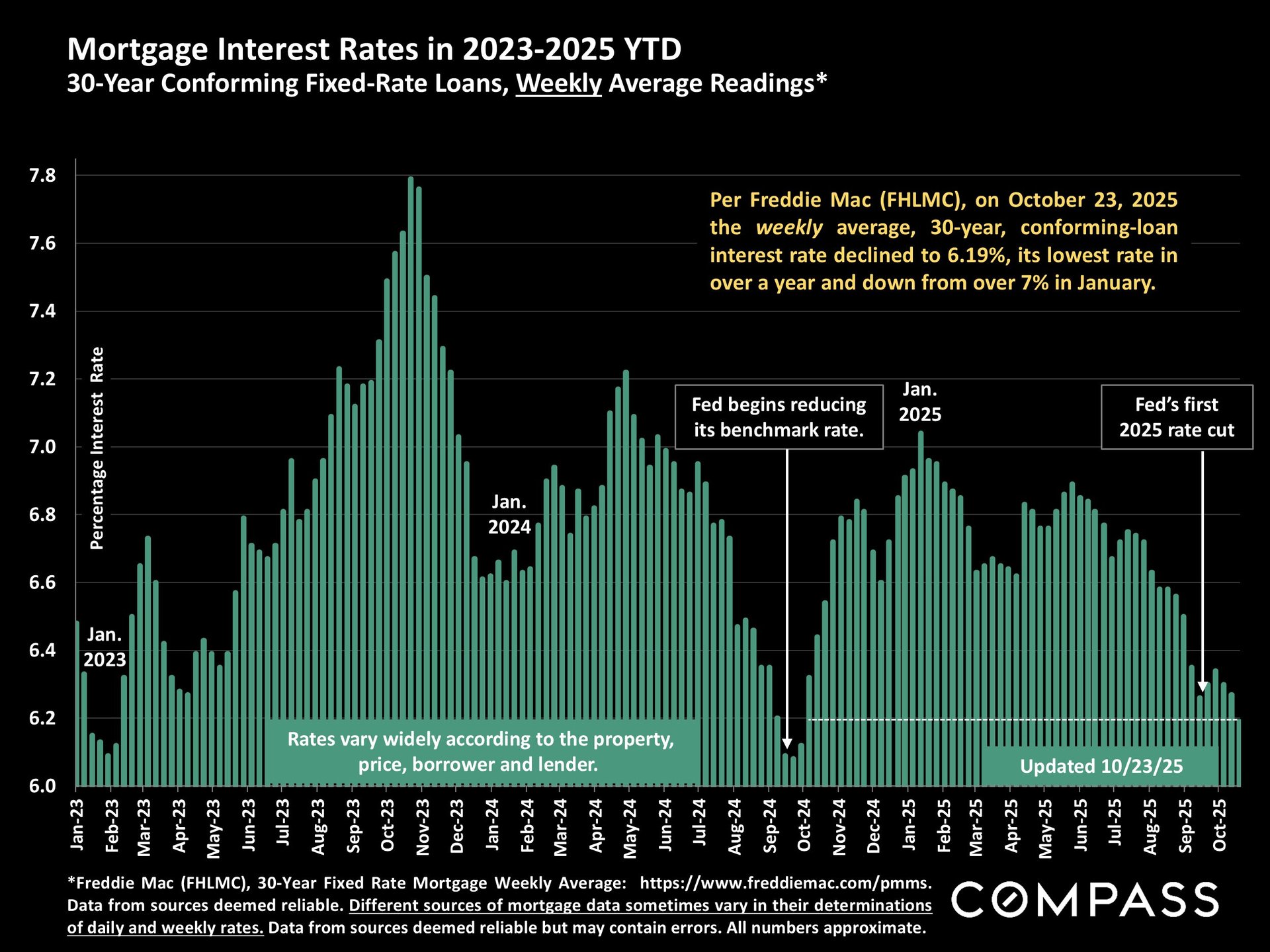 As we move through the final quarter of 2025, the national housing market is showing a fascinating mix of stability, renewed optimism, and shifting dynamics. According to the latest Compass National Real Estate Insights, the third week of October marked the lowest interest rate reading in over a year—a change that could have a major impact on buyer activity as we head into the end of the year.