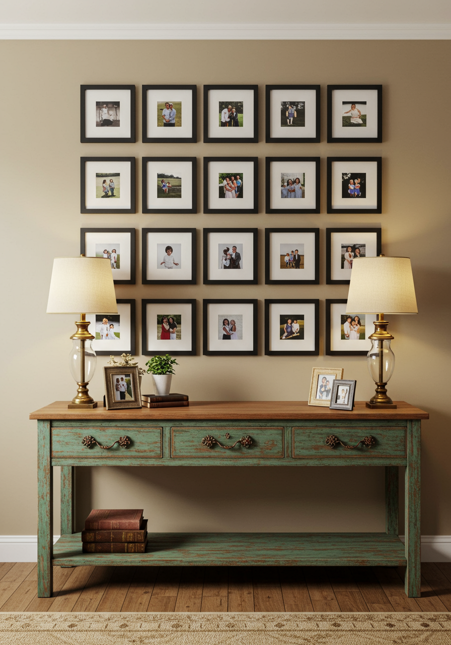 Compile your favorite memories into a personalized photo collage. This can be a focal point in your living room or a heartwarming addition to your bedroom. Frame the collage with a variety of unique and thrifted frames to add an eclectic touch. It's a great way to celebrate special moments and create a visual narrative of your life.
