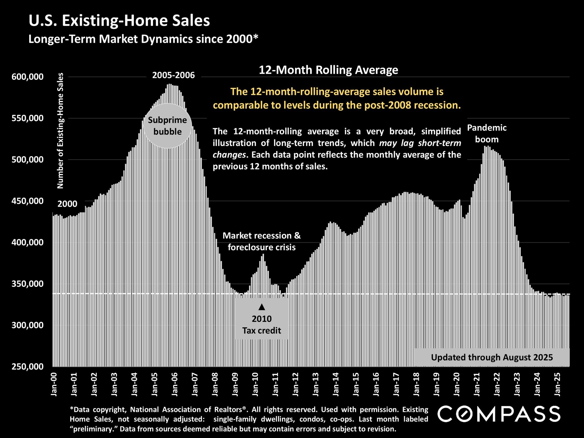 The 12-month rolling average of home sales continues to hover near levels last seen during the Great Recession, reflecting ongoing affordability challenges and cautious consumer sentiment. Yet, it’s important to remember that hundreds of thousands of homes still sell each month, and well-prepared listings can still attract multiple offers and sell quickly.