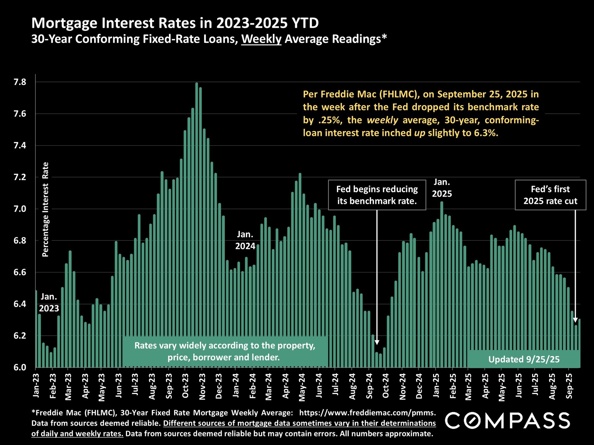 Despite this move, the average 30-year mortgage rate inched up slightly after the Fed’s September 17th announcement—but remains below earlier 2025 levels.