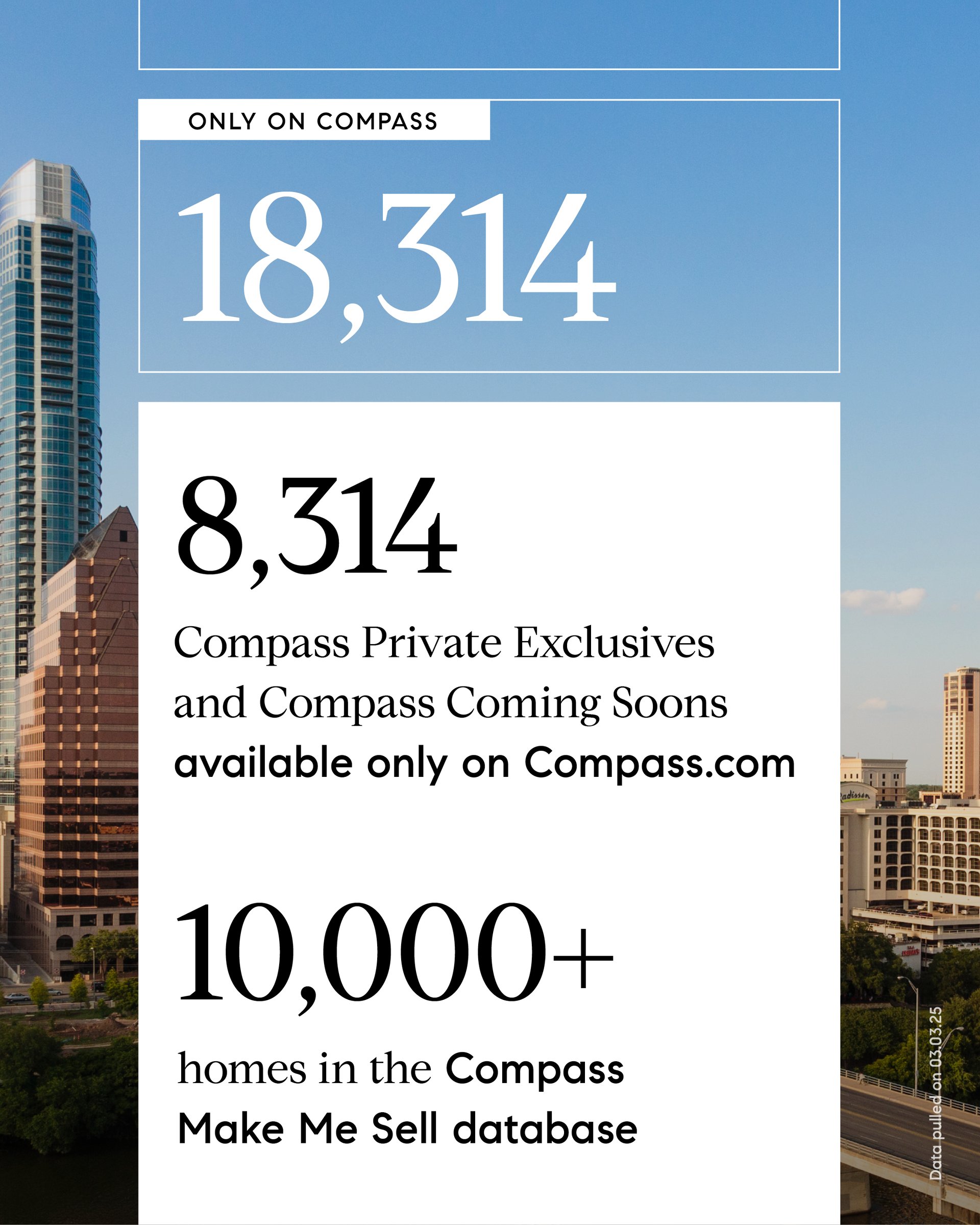 One of the most powerful of these tools is Make Me Sell, part of Compass’ broader suite of exclusive inventory and smart marketing strategies designed to help you move confidently, whether you’re buying, selling, or just exploring what’s possible.